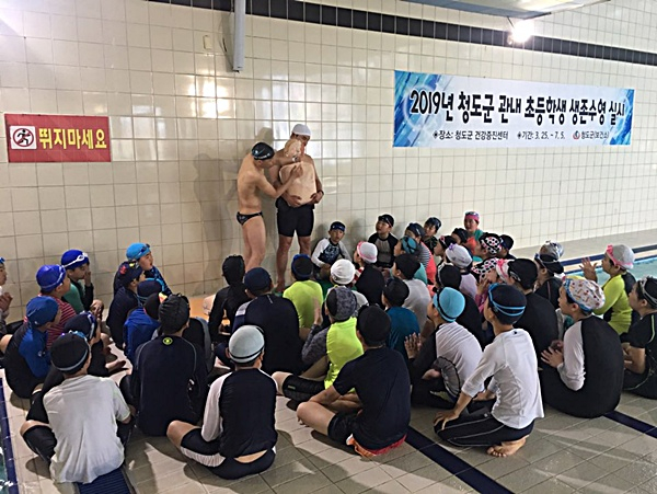청도군(군수 이승율)은 지난 3월 25일부터 7월 5일까지 청도군보건소 건강증진센터에서 11개 초등학교 2, 3, 4, 5, 6학년 학생 930명을 대상으로 기본 수영과 생존수영교육을 개인별 10시간씩 실시한다.