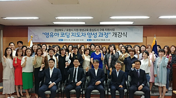 포항시는 지난 21일 한동대학교 현동홀에서 수강생 50명이 참석한 가운데 ‘영유아 코딩 지도사 양성과정’ 개강식을 가졌다.