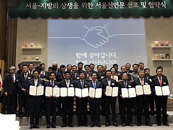 이날 협약식에는 이장식 경산부시장과 박원순 서울시장, 성장현 서울특별시구청장협의회장을 비롯한 28개 지자체장이 참석한 가운데 지역상생 협약식을 가졌다.