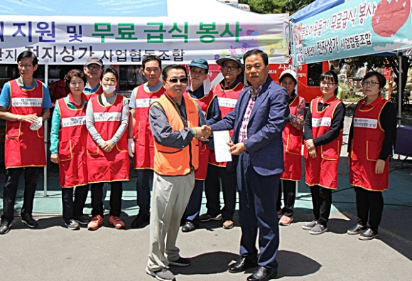김상출 시도민 사회공헌위회 수성구 위원장(대구종합유통단지 전자상가협동조합 이사장)은 5월 가정의 달을 맞아 지난 5월 21일 오전 11시부터 상가조합 임직원 및 조합원, 입점업체 대표 등 20여명이 무료급식 봉사활동으로 사랑나눔을 실천했다.