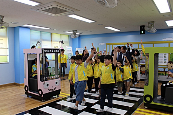 또, 안전 체험교육을 마친 1~2학년 학생들에게 반사재 투명우산, 안전조끼, 다기능 안전등, 응급처치키트로 이루어진 안전꾸러미를 선물로 증정했다.