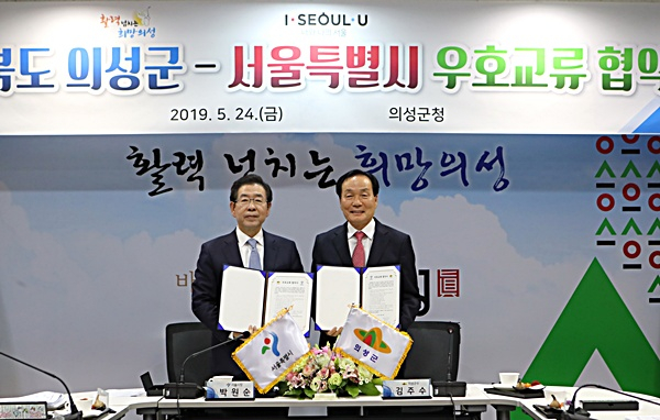 경북 의성군과 서울특별시는 지난 24일 15시 의성군청 영상회의실에서 김주수 의성군수와 박원순 서울시장 등이 참석한 가운데 도농교류 상생우호를 위한 협약을 체결했다.
