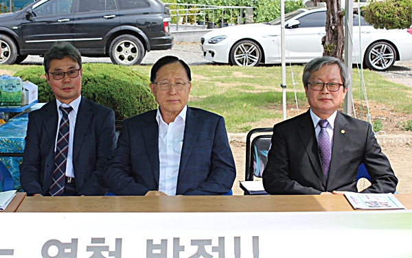 | 왼쪽부터 백성훈 부위원장, 조동희 시도민회 사회공헌위원장, 정태용 영천남부초등학교 총동창회장 |