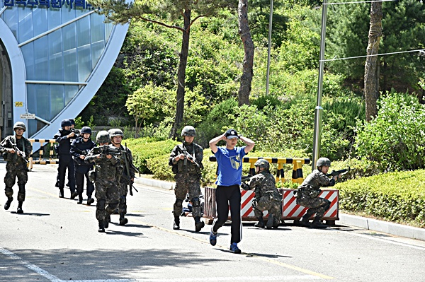 ‘2019 을지태극연습 실제훈련’으로 실시된 이번 훈련은 적 특작부대가 국가주요방호시설인 청송양수발전소에 폭발물 테러를 가한 상황을 가정하여, 군부대 지원으로 적을 격퇴하고, 경찰서 및 군청은 현장수습, 119안전센터와 보건의료원은 사상자 치료 및 후송, 화재에 따른 직원대피, 화재진압 등 민·관·군이 함께 대응하는 종합대책 훈련이었다. [시군향우회인터넷뉴스=정미진기자]