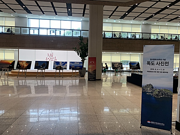 울릉군 독도관리사무소에서는 지난 4일 화요일부터 7월 31일 수요일까지 2달여의 기간 동안 서울 서초구 ‘국립중앙도서관’ 본관 1층 열린마당에서 ‘임시정부수립 100주년 기념 독도사진전시회’를 개최하여 우리땅 독도를 적극 홍보한다.