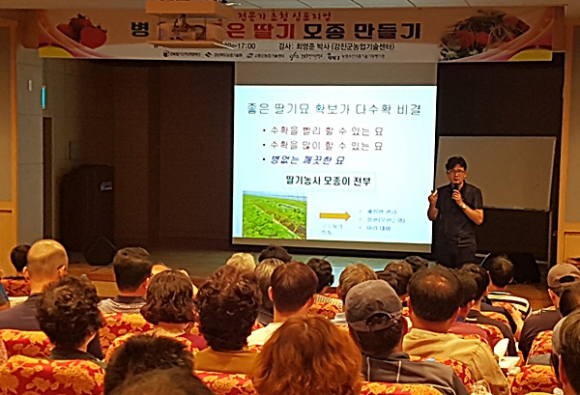 고령군(군수 곽용환)에서는 지난 5일 1시 30분부터 5시까지 대가야박물관 강당에서 관내 딸기재배 농업인 70명, 도내 딸기농업인 120명 등 190여 명이 참석한 가운데 딸기 전문가를 초청하여 ‘병 없고 좋은 딸기 모종 만들기!’란 제목으로 심포지엄을 개최했다.