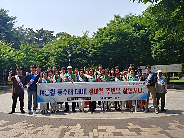 대구 중구(구청장 류규하)는 지난 4일 공무원 및 지역자율방재단원 40여 명이 참여한 가운데 동성로 일원 상인들을 대상으로 여름철 자연재난 대비 홍보 캠페인을 전개했다.