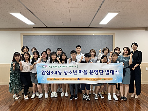 대구 동구 안심3·4동 우리마을 교육나눔 위원회에서는 6월 4일 안심3·4동 행정복지센터에서 안심중학교 학생 및 관계자 등이 참석한 가운데 ‘청소년 마을운영단’ 발대식을 갖고 첫 번째 토론회를 가졌다.