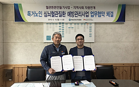 청송군의 65세 이상 노인인구는 전체인구 대비 35%로 이미 초고령사회에 접어들었으며, 특히 심뇌혈관질환에 취약한 독거노인은 인구대비 26%로 독거노인에 대한 집중적인 질환 관리가 필요함에 따라, 양 기관은 독거노인생활관리사를 중심으로 찾아가는 심뇌혈관질환 예방관리사업 협력체계를 구축하고자 업무협약을 체결하게 됐다.