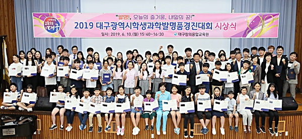 대구창의융합교육원(원장 장진주)은 지난 6월 10일 오후 4시 시청각실에서 ‘2019년 대구광역시학생과학발명품경진대회’ 입상자인 학생 127명, 지도교사 87명 등 총 214명을 대상으로 시상식을 개최한다.