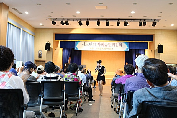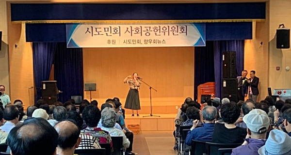 시도민회 사회공헌위원회(회장 조동희, 이하 사회공헌위)는 18일 오전 10시 30분 동구 강동노인복지관에서 지역 어르신들을 위한 ‘제17회 어르신 섬김 공연’을 실시했다,