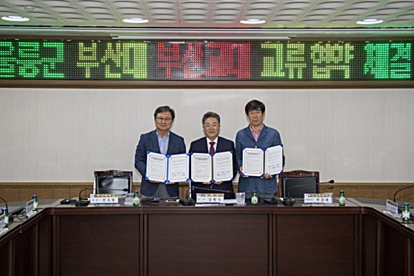 울릉군(군수 김병수)과 부산대학교(총장 전호환), 부산교육대학교(총장 오세복) 세 기관은 지난 6월 13일 울릉군청에서 상호 교류 및 협력체계 구축을 위한 3자 교류협약을 체결했다.