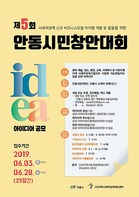 안동시는 오는 6월 28일까지 지역공동체 활성화와 신규 일자리 창출을 위해 ‘제5회 안동시민 창안대회 아이디어’를 공모한다.