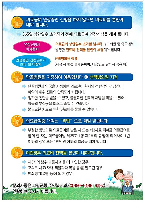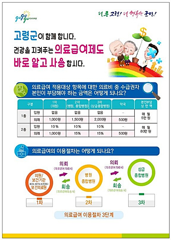 고령군(군수 곽용환)은 관내 의료급여 수급자를 대상으로 금년도 의료급여제도 안내문을 발송하는 등 의료급여제도 홍보에 적극 나섰다.