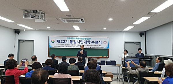 경북대학교 평화문제연구소와 대구통일교육센터가 주관하고 통일시민대학연합회가 후원하는 ‘제22기통일시민대학’ 수료식이 지난 6월 18일 호우 6시 30분 경북대학교 글로벌플라자 세미나실 201호에서 열렸다.