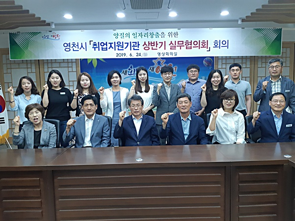 영천시(시장 최기문)는 지난 6월 24일 시청 영상회의실에서 양질의 일자리창출 방안 논의 위해 관내 취업지원기관(영천시, 영천상공회의소 산업인력조달지원센터, 영천시 취업지원센터, 영천여성새일센터, 영천시니어클럽, 농업인력지원센터) 실무협의회를 개최했다.