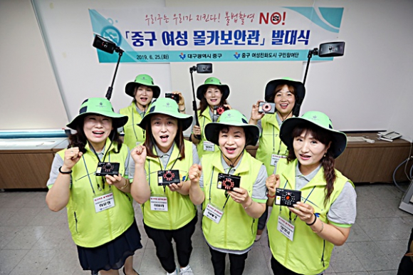 대구 중구(구청장 류규하)는 구민이 안심하고 이용할 수 있는 공중화장실 몰카 청정지대를 만들기 위해 지난 6월 25일 오후 4시 중구청에서 중구 여성친화도시 구민참여단 단원 8명으로 구성된 ‘중구 여성 몰카보안관’ 발대식을 개최했다.