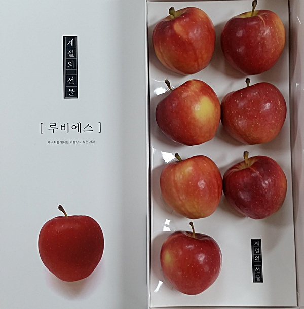 ‘루비에스’는 농촌진흥청에서 2015년 등록한 최신 품종으로 8월 하순경 수확되며 무게가 80g 정도로 기존 미니사과 ‘알프스오토메’ 보다 2배 정도 크다.