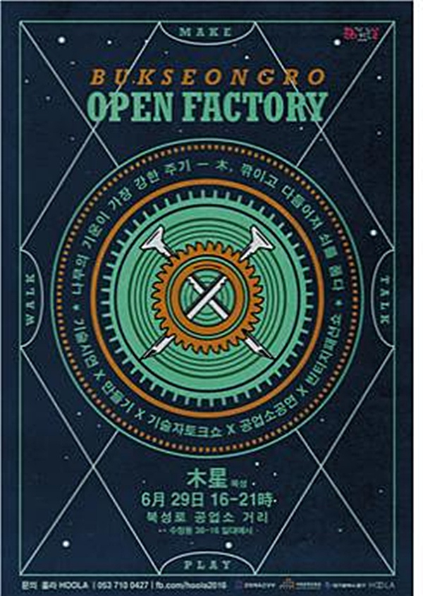 작업 지시서를 따라 공업소를 방문하여 기술시연을 관람하고 나무 캔들 홀더를 만들 수 있는 ‘팩토리 랠리’ 프로그램은 오후 4시부터 7시까지 대영로구로와 희성정밀, 토브공방에서 진행된다. 선착순으로 단 50명만 참여 가능하며, 제품을 완성하면 북성로 오픈 팩토리 스페셜 에디션 카드를 받을 수 있다. 참가비는 5,000원이다.
