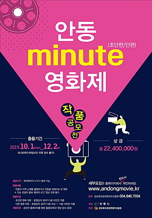 안동시는 경북문화콘텐츠진흥원과 함께 2019년 ‘안동 minute(분) 영화제’개최를 위한 작품 공모 요강을 발표했다.