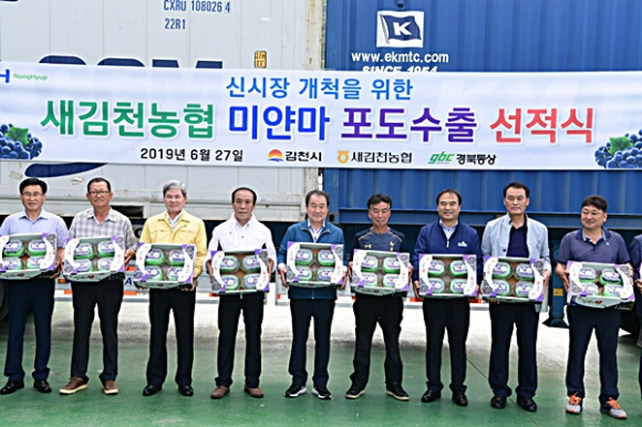 새김천농협(조합장 신외철)은 지난 6월 27일 어모면 소재 농산물산지유통센터에서 미얀마 첫 수출을 기념하기 위해 선적식을 개최했다.