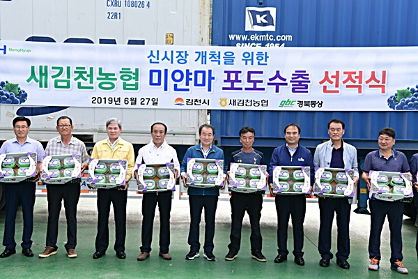 김충섭 김천시장, 신외철 새김천농협장, 서동완 농협김천시지부장, 수출농가 등 관련 유관기관 단체장 등이 참여하여 새로운 시장 개척을 축하하며 포도 수출에 대한 의지를 다졌다.