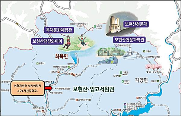 한편, 화북면 (구)자천중학교는 현재 보현산 녹색체험터 조성사업 실시설계 중에 있으며, 인근에 설치 계획 중인 보현산댐 인도교(출렁다리), 보현산댐 탐방로와 최근 개장한 목재문화체험장과 오리장림, 보현산 짚와이어, 모노레일, 천문과학관 등 우수한 관광인프라에 더해 여행자들을 위한 편의제공으로 영천시 관광 시너지 효과에 한 몫을 톡톡히 할 것으로 기대된다. [시군향우회인터넷뉴스=정미진기자]