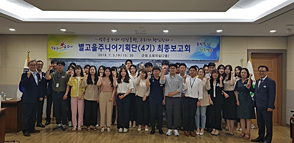 성주군은 지난 7월 3일 군정 미래발전 과제에 대한 참신한 시책 개발 및 직원 역량강화 위해 운영 중인 ‘별고을 주니어 기획단’의 최종보고회를 개최했다.