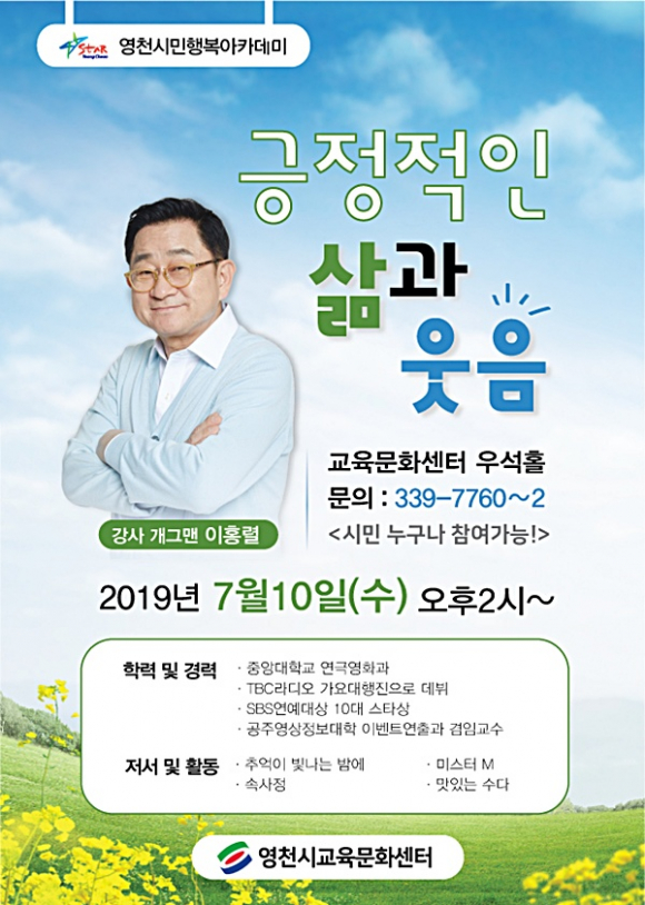 영천시교육문화센터는 오는 7월 10일 방송인 이홍렬을 초청해 올해 세 번째 시민행복 아카데미를 개최한다.