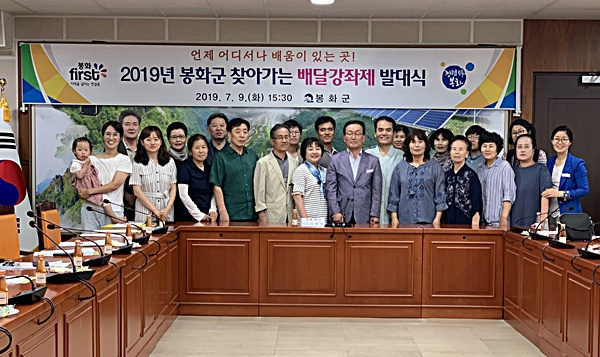 봉화군(군수 엄태항)에서는 지난 7월 9일 군청 소회의실에서 강사, 수강생 대표 30여 명이 참석한 가운데 ‘2019년 봉화군 찾아가는 배달강좌제’ 발대식을 가졌다.