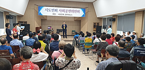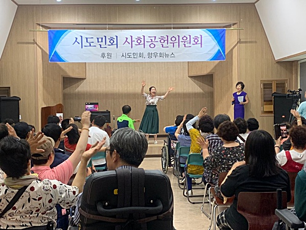 시도민회 사회공헌위원회(회장 조동희, 이하 사회공헌위)는 지난 7월 12일 오전 10시 포항시장애인종합복지관에서 장애우들을 위한 위문공연을 실시했다,