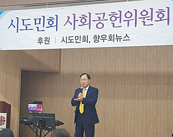 | ↑↑ 조동희 시도민회 사회공헌위원회 회장이 인사말 하고있다. |