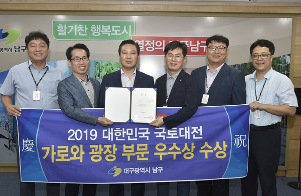대구광역시 남구청(구청장 조재구)은 국토교통부와 국토연구원, 파이낸셜뉴스가 공동으로 주최하는 '2019 대한민국 국토대전' '가로와 광장 부문'에서 ‘이천동 테마거리 조성사업’으로 한국설계학회장상을 수상했다.