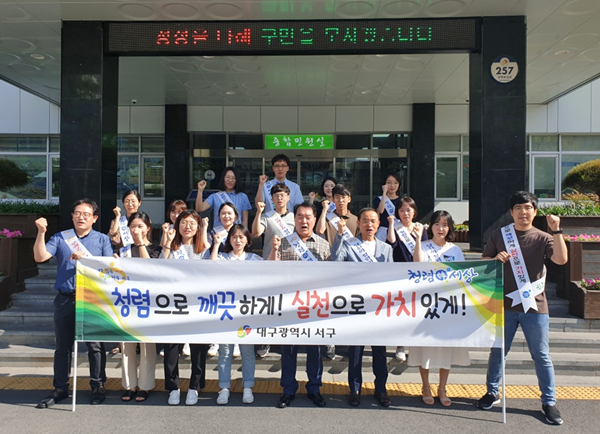 대구 서구청(구청장 류한국)은 지난 7월 12일 청렴한 공직 분위기 확산 및 청렴 의식 고취를 위해 출근길 직원들을 대상으로 청렴 캠페인을 실시했다.