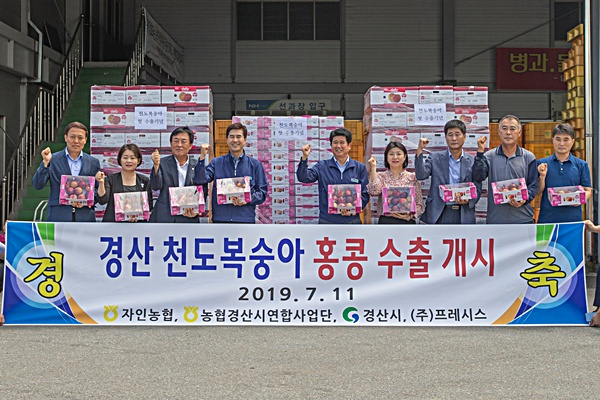 여름철 대표 과일로 인기를 모으고 있는 경산 천도복숭아가 올해 처음으로 홍콩 수출 길에 올랐다.