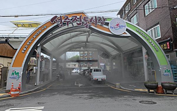 성주군은 기후변화에 따른 여름철 폭염에 선제적으로 대응하고자 성주전통시장 입구에 5천만 원의 사업비를 투입해 쿨링포그 설치공사를 완료했다.