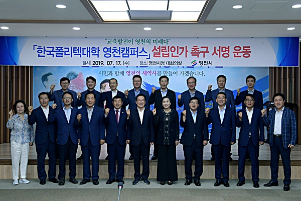 영천캠퍼스 설립과 관련해 현재 폴리텍대학법인은 2020년 9월 개교를 목표로 설립인가 신청을 준비하고 있으며, 시는 이를 위한 협조에 전 행정력을 집중하고 있다. 지난 15일 관내 고등학교장 간담회에서 폴리텍대학 설립인가 촉구 서명운동을 펼치는 등 설립인가를 위한 서명운동을 대대적으로 펼쳐나갈 계획이다.