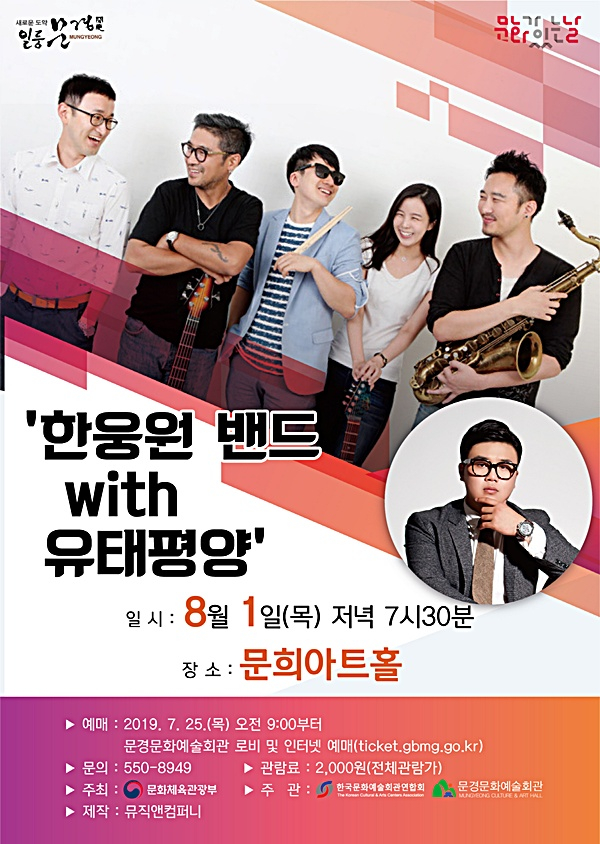 우리 판소리의 깊이와 재즈의 강렬한 그루브가 만나는 특별한 무대가 펼쳐진다. 오는 8월 1일 문경문화예술회관 문희아트홀에서 열리는 <문화가 있는 날 – 한웅원밴드 with 유태평양>은 현재 최정상의 재즈 뮤지션들로 구성된 한웅원 밴드와 ‘국악신동’으로 우리에게 처음 소개됐던 젊은 소리꾼 유태평양이 함께 만드는 공연이다.