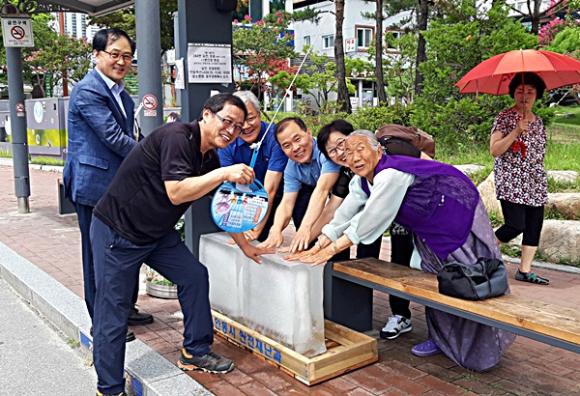 시는 버스 주 이용객이 노약자와 학생들인 만큼 여름철 무더위를 작게나마 덜어주기 위한 방안을 고민하다 대형얼음을 배치하게 됐다고 밝혔다.