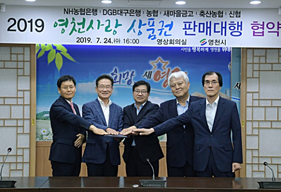영천시(시장 최기문)는 영천 지역 내에서만 사용이 가능한 영천사랑상품권 발행을 앞두고 지난 7월 24일 지역 내 금융기관과 상품권 판매대행 협약을 체결했다.
