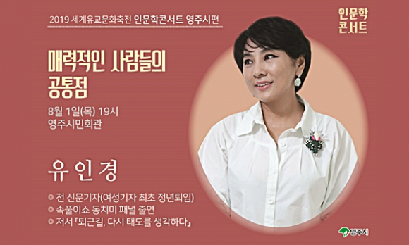 영주시(시장 장욱현)와 (재)세계유교문화재단(이사장 임대근) 개최하는 ‘2019 세계유교문화축전 인문학콘서트–영주시편’이 오는 8월 1일 오후 7시 영주시민회관에서 열린다.