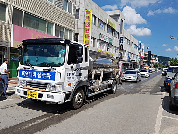 태풍과 장마 이후 폭염이 본격적으로 시작됨에 따라 영양군(군수 오도창)은 군민들의 체감온도 저감 및 폭염피해예방을 위하여 시가지 도로 살수를 위한 차량을 가동하기 시작했다.