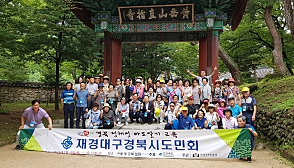 재경대구경북시도민회(회장 강보영)는 지난 7월 18일부터 19일까지 2일간 김천·안동·영덕·울진 등 경북 일원에서 경상북도가 주최하고 한국국학진흥원이 주관하는 ‘경북 정체성 바로알기 교육’ 참석을 위한 연수를 실시했다.
