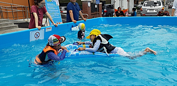 문경시 도시재생지원센터(이하 센터)는 지난 8월 3일부터 25일까지 센터 주차장에 어린이 물놀이터(으라차차모험 물놀이터)를 개장한다.