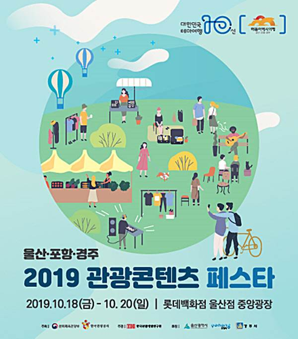 포항, 울산, 경주 3개 권역 내 관광콘텐츠를 활용해 활동 중인 개인과 단체, 기관 등이 관광콘텐츠 홍보할 수 있는 자리인 ‘2019 관광콘텐츠 페스타’가 오는 10월 18일부터 20일까지 롯데백화점 울산점 중앙광장에서 개최된다.