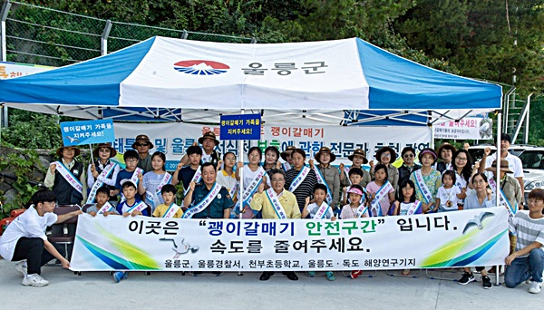 울릉군은 지난 8월 9일 울릉도 독도 괭이갈매기의 주요 서식지인 북면 관음도 인근 울릉일주도로변에서 괭이갈매기 로드킬예방 등 환경보호 캠페인을 실시했다.