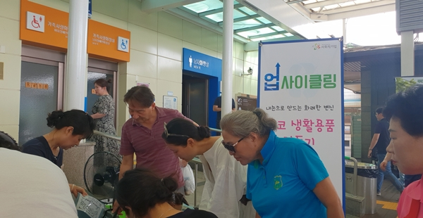 | ↑↑ 팝업스토어 제품을 구경하고 있는 휴게소 방믄객들 |