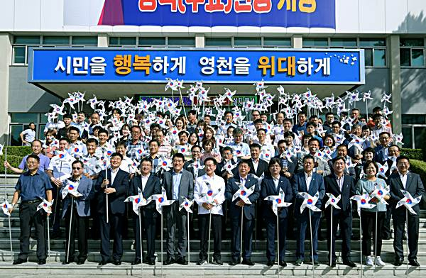 영천시(시장 최기문)는 제74주년 광복절을 기념해 국권 회복을 경축하고 나라사랑하는 마음을 드높이고자 지난 8월 12일 시청 화단과 소공원 일원에 태극기 바람개비를 설치하는 행사를 가졌다.
