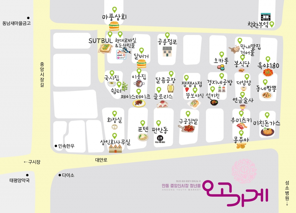 이번에 오픈한 중앙 신시장 청년몰은 안동시가 2017년 중소벤처기업부 공모사업에 선정되어, 예산 15억 원을 투입해 미래 전통시장을 이끌어갈 청년상인 20명의 땀과 열정의 결과물로 오픈하게 됐다.