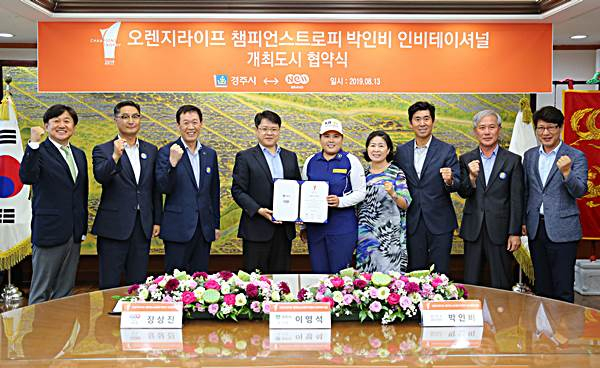 경주시는 지난 8월 13일 경주시청 대외협력실에서 오렌지라이프 챔피언스 트로피 박인비 인비테이셔널 개최도시 협약서를 체결했다.